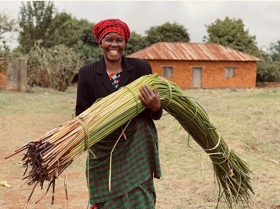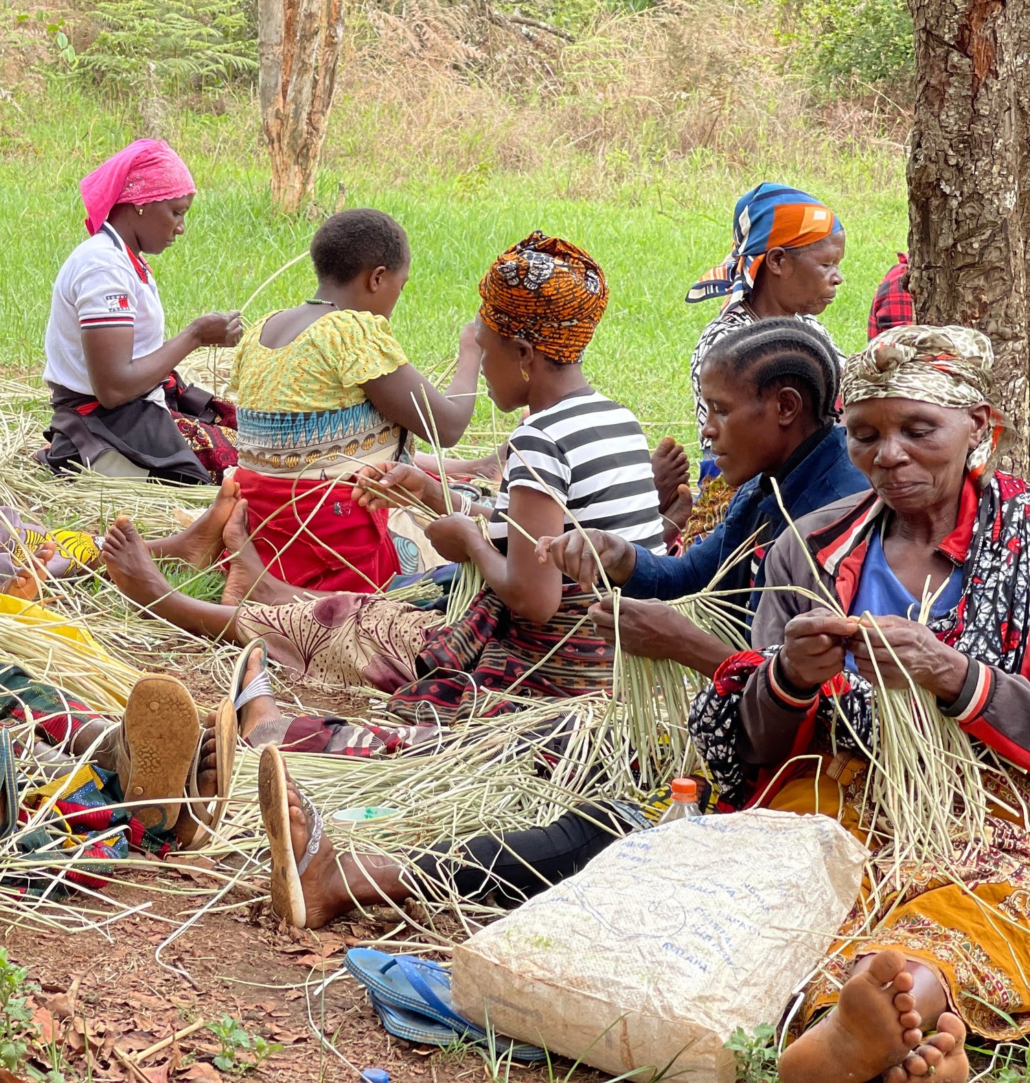 The environmentally-friendly reed grass called "Milulu" is used for weaving the bags. The "Milulu" grows near streams, and the local women uproot, clean, and dry these grasses before using them for weaving the bags. We combine the skillfully hand-woven hampers with elements of high-quality Tanzanian leather. We carefully add the leather by hand to ensure the quality of the final product.