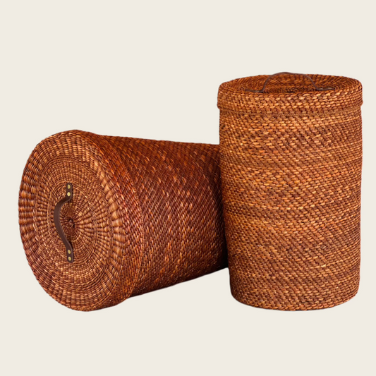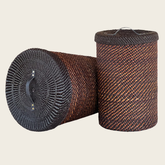 "Tupia" is slang in Swahili for 'throwing in'. The TUPIA hampers are a beautiful and natural addition to your living space, lending a rustic and organic charm to your laundry room or bedroom. With a variety of designs and styles to choose from, you can select a handwoven laundry hamper that complements your personal taste and interior decor. These hampers are crafted by skilled rural women artisans from Southern Tanzania, showcasing their artistry and cultural heritage.